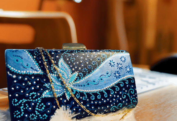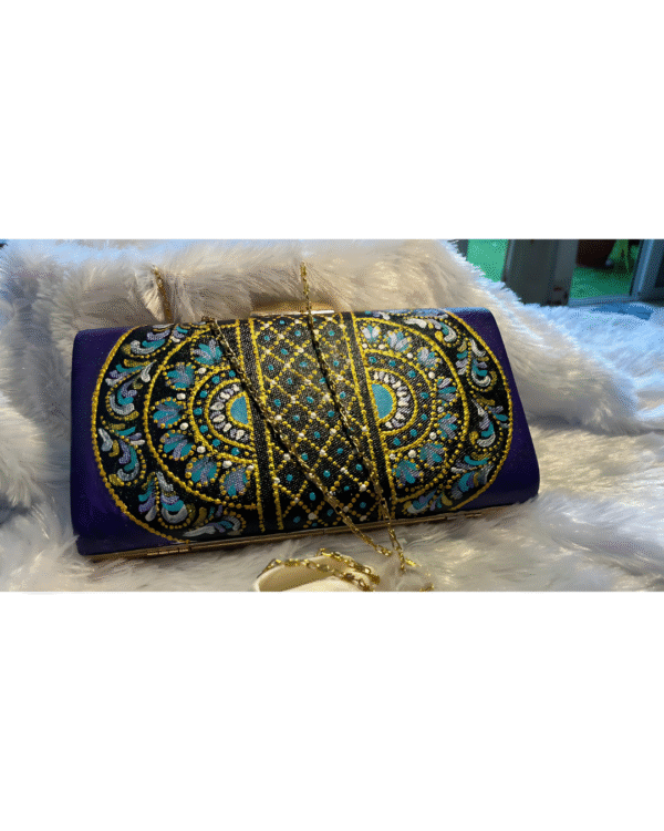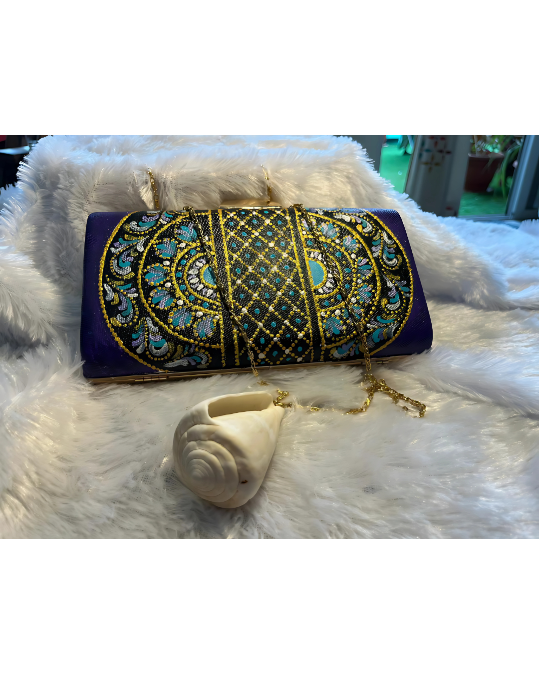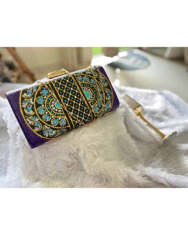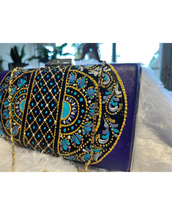 Be the first to review “Regal Mandalas – Hand-Painted Clutch in Dot Art”